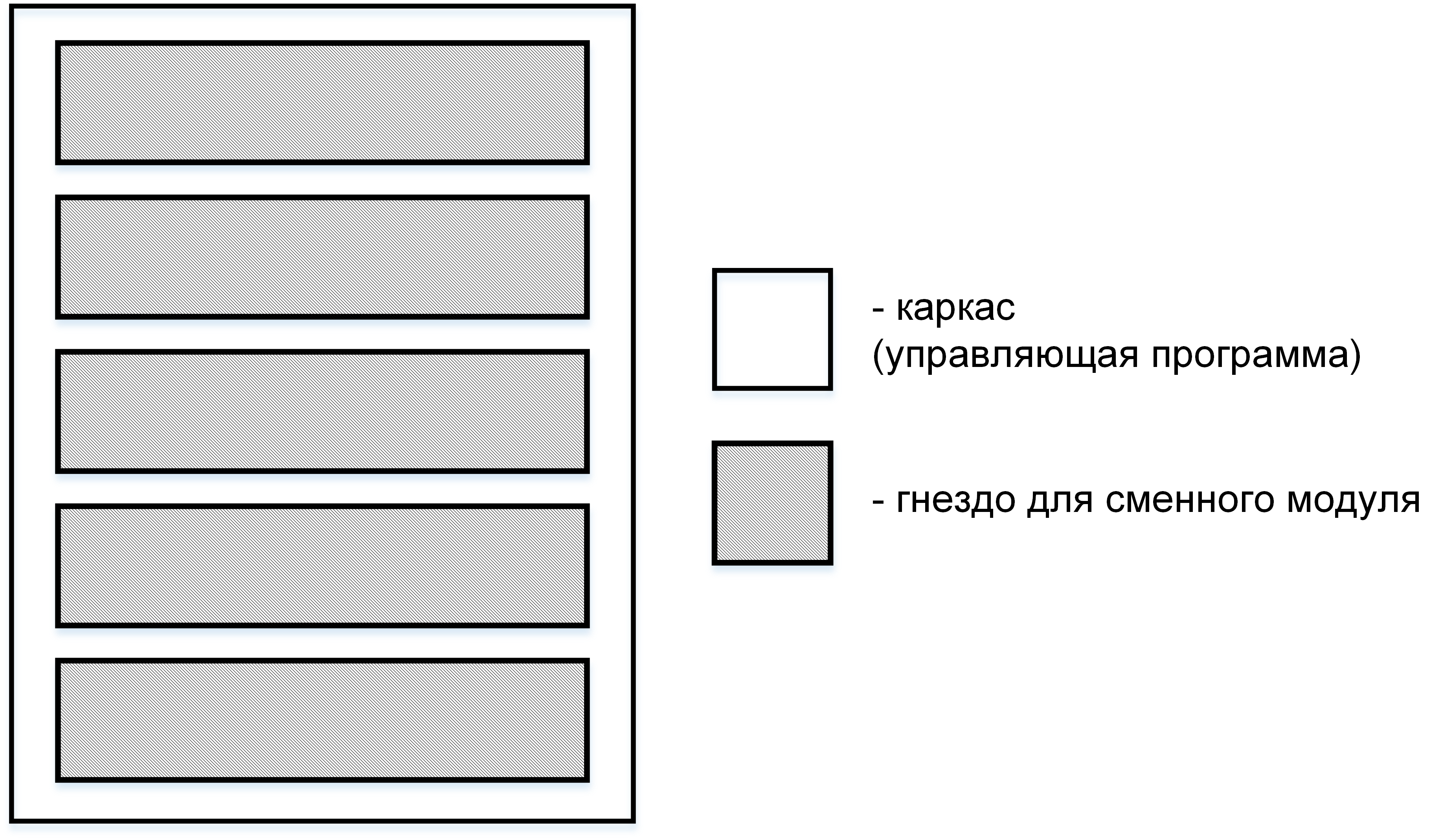 При каркасном подходе (рис. 8) каждый агент состоит из двух обязательных частей: каркаса и гнезд. Каркас представляет собой неизменяемую часть программы и включает в себя совокупность изменяемых частей – гнезд, в которые помещаются сменные модули пользователей.