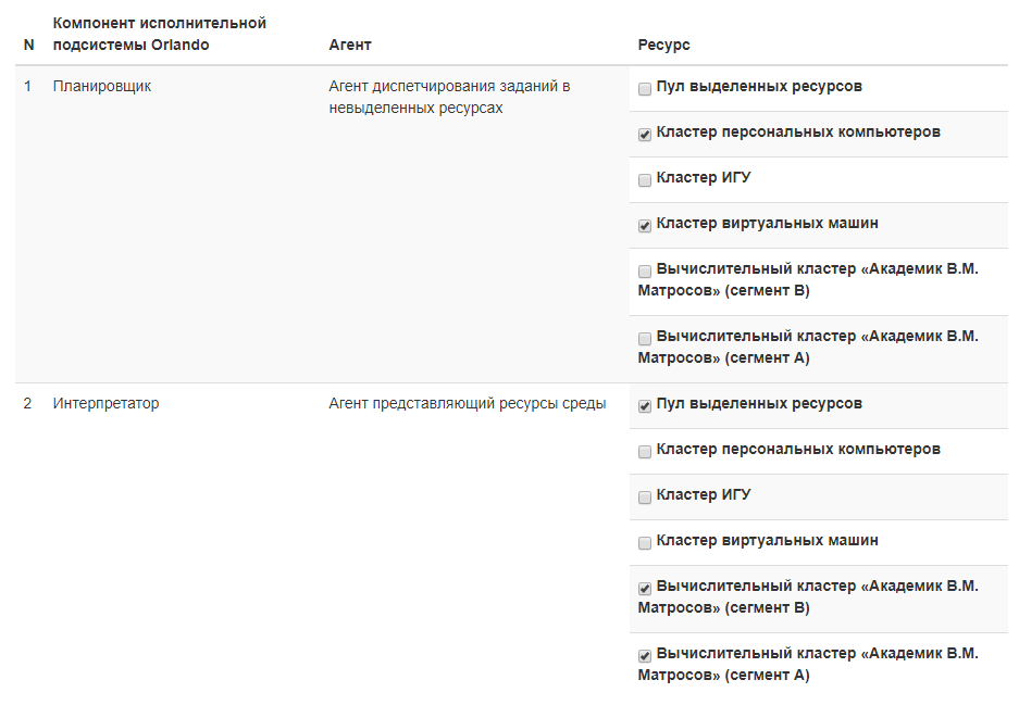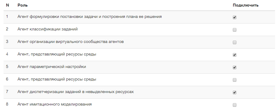 - выбор необходимых ролей агентов из числа доступных;